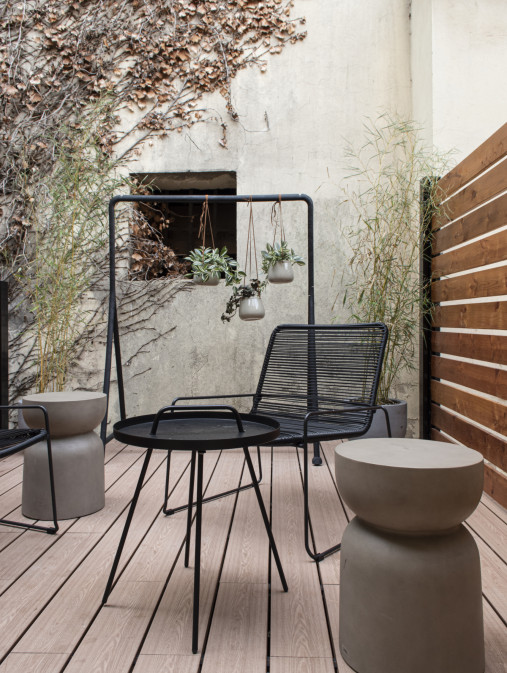 Veliki komadi namještaja u hrabrim tamnim tonovima, isprepliću se sa kožom, mekanim tepisima, krznom i ratanom te čine savršeno mekanu ovojnicu za opuštanje koja se u pravom trenutku širi i na vanjski prostor privatnog atrija.